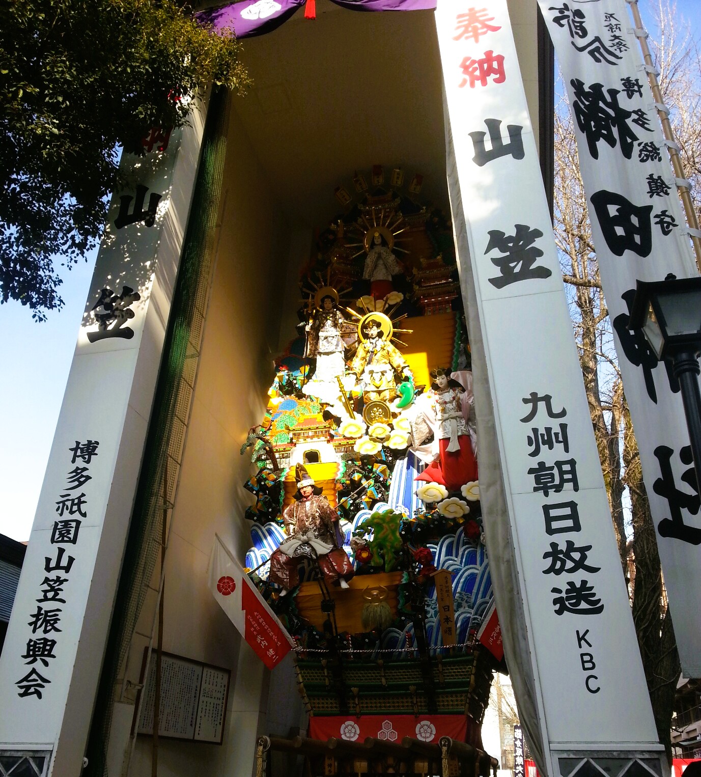 신사 안쪽으로 들어가면 오랜 역사를 간직한 신사 건물이 자리하고 있으며 특히 장엄한 '가자리 야마카사'라고 불리는 가마가 전시되어 있어 방문객들의 시선을 사로잡습니다.